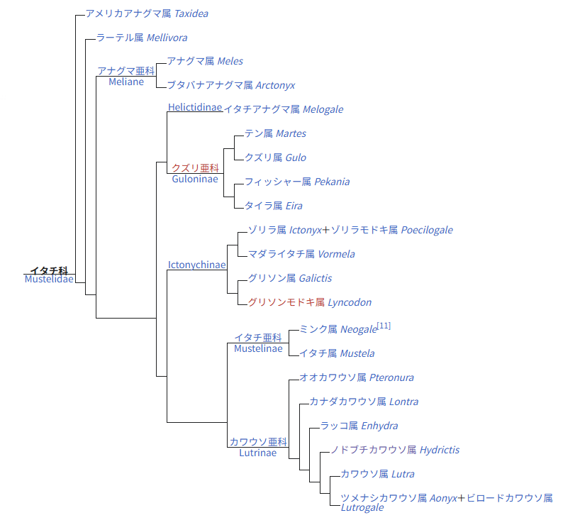 そして、この中の「イタチ科」は下記のような進化を遂げます。
