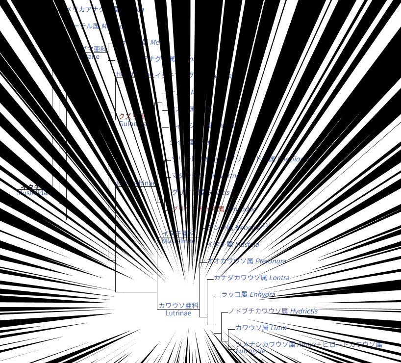 ただし、「カワウソ」自体も系統図のように色んな種類があり、次回はカワウソの分類についてさらに詳しく解説していきたいと思います。